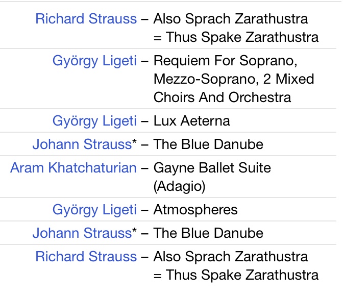 La tracklist di 2001: a Space Odissey è tratta da www.discogs.com
